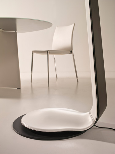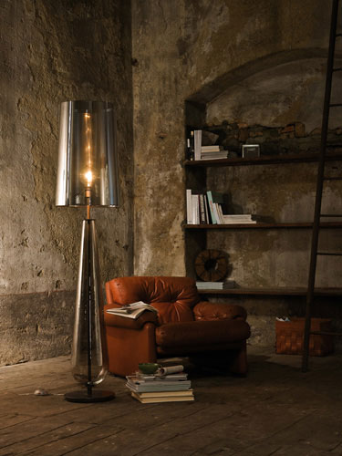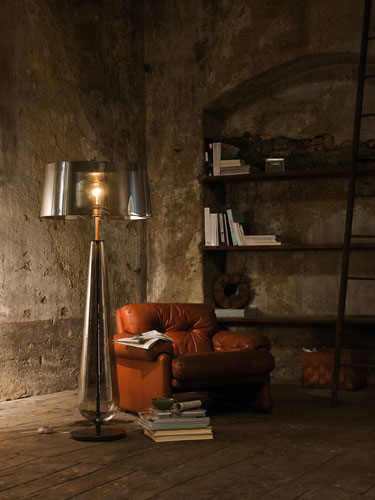 Торшер, корпус из штамповонной стали покрытый лакированным термо-пластиком или кожей.