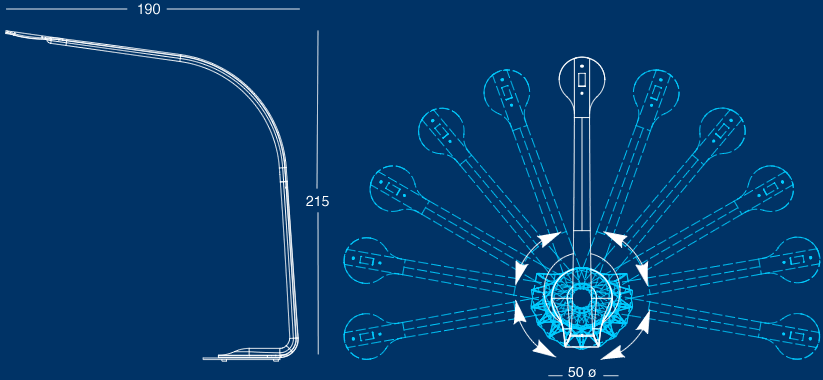 Бра и потолочный светильник из термопластика в глянцевых цветах: белый, черный, серебристый или Бордо. 180 ° с регулируемым вверх-вниз отражателем.